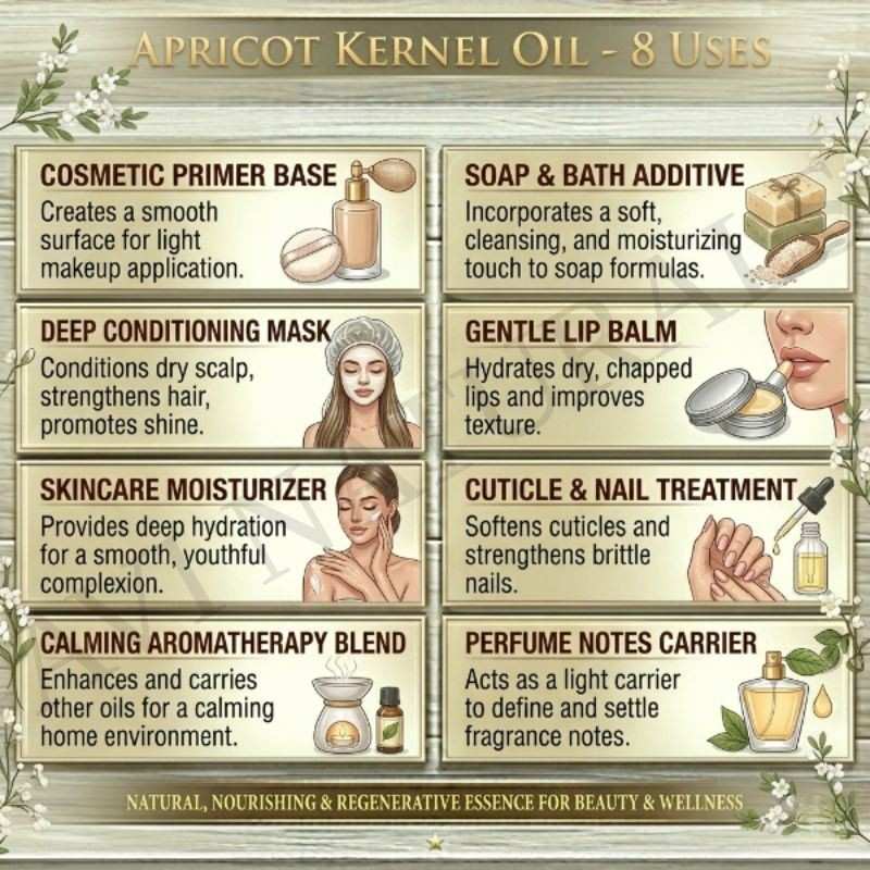 Answer: Apply a few drops to the scalp or hair lengths and massage gently, or incorporate it into hair masks or leave-in treatments.Q10. Can Apricot Kernel Oil be used in skin care?