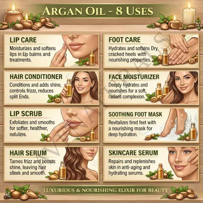 - Hair Mask: Revitalize your hair with an Argan Oil hair mask. Mix this Oil with Coconut Oil and honey, then apply the blend to damp hair. Leave it on for 30 minutes before shampooing to nourish and restore luster.