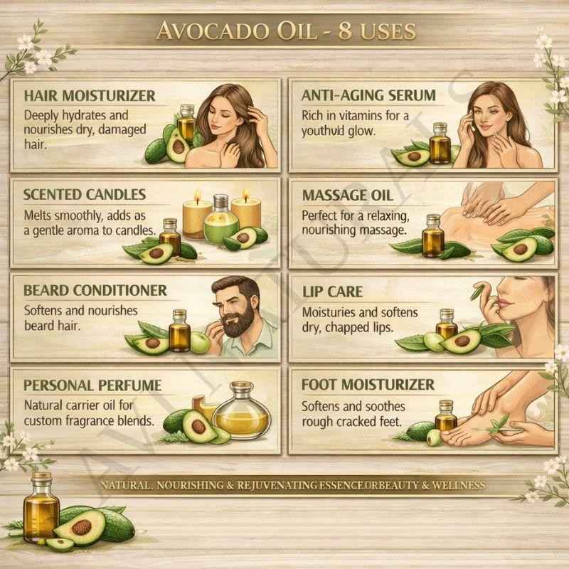 - Moisturizing Body Oil: After a shower, apply avocado oil directly to damp skin to lock in moisture. Its nourishing properties make it an excellent natural alternative to commercial body lotions.