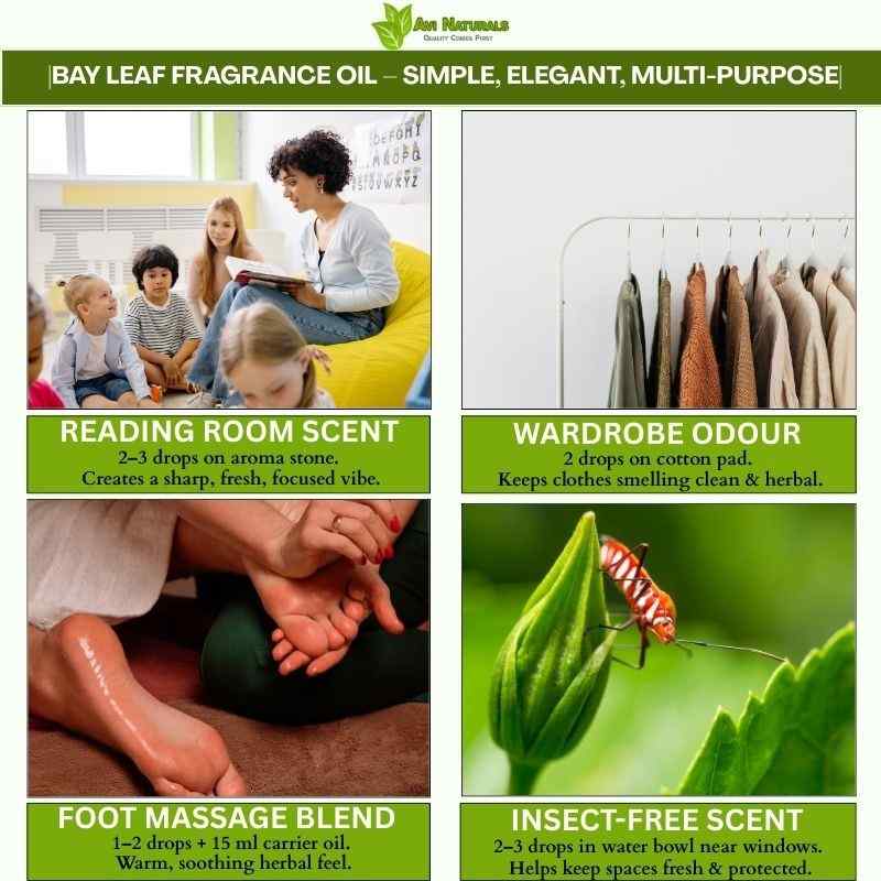 Sprays, mists, and potpourri enhanced with Bay Leaf Fragrance Oil refresh interiors with a subtle, inviting presence, making spaces feel warm and welcoming.