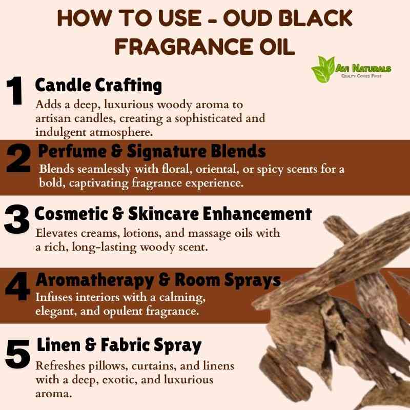 - Massage Oils: Blend Black Oud Fragrance Oil with a carrier oil for a relaxing and aromatic massage experience.