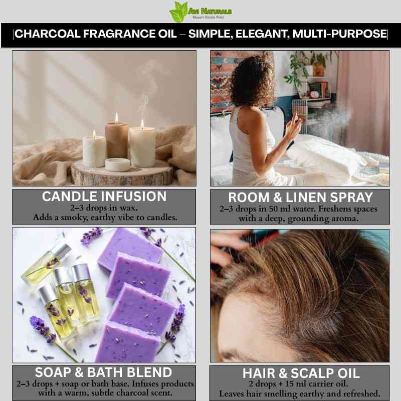 Use Charcoal Fragrance Oil as a base note in unisex or masculine perfumes. It pairs wonderfully with cedarwood, sandalwood, musk, and amber, creating long-lasting fragrances with depth and intrigue.