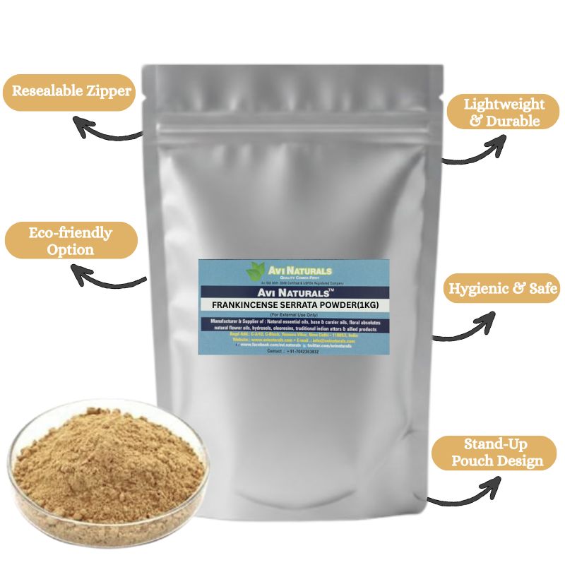 Frankincense (Boswellia Serrata) Powder is a naturally aromatic, finely milled resin powder widely used in cosmetics, perfumery, candle-making, and aromatherapy. Its deep, woody, and slightly sweet aroma evokes calmness, balance, and naturally grounding sensations, making it ideal for signature creations. In cosmetics, Frankincense Powder is used in face masks, scrubs, and body treatments, providing a naturally aromatic, luxurious, and indulgent sensory experience. Candle artisans use it to create premium, naturally aromatic candles that fill spaces with warmth, serenity, and refined ambiance. Perfumers employ it as a versatile base or accent element, blending seamlessly with floral, woody, or oriental scents to produce layered, naturally aromatic compositions. Aromatherapy enthusiasts incorporate it into incense, diffuser blends, and personal care products to create sensory-rich, grounding, and calming environments. Its fine texture, long-lasting aroma, and resinous richness make Frankincense (Boswellia Serrata) Powder an essential ingredient for artisans designing naturally aromatic, sophisticated, and signature cosmetic, candle, and aromatherapy creations.