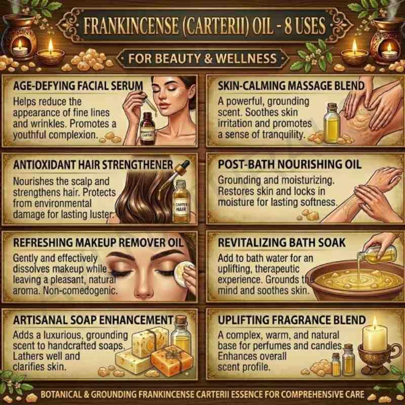 Few oils offer the same versatility as Frankincense Carterii Oil. It adapts across perfumery, cosmetics, aromatherapy, and candles, making it indispensable for artisans and wellness creators.