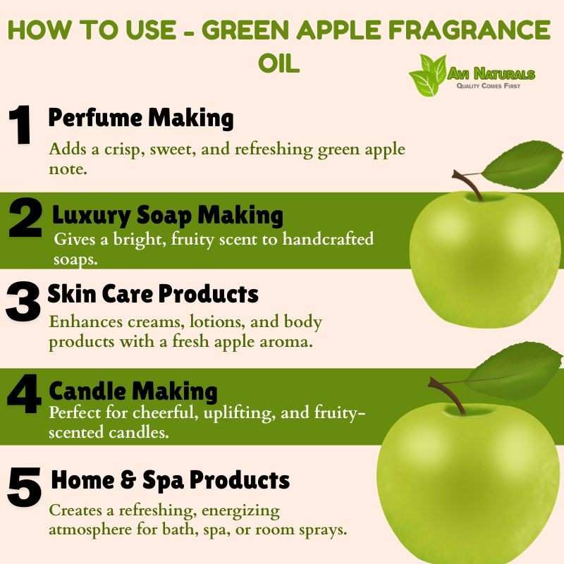 Buy Green Apple Fragrance Oil, 100% Pure at Wholesale Price, suitable for Individual Use and Professional Creations | Fine Perfume Blends, Body Care Products, Hair Mists, Handmade Soaps, Scented Candles, Aroma Diffusers, Wax Bars, Potpourri, Linen Sprays, Decorative Crafts, Home Scenting Solutions & more.