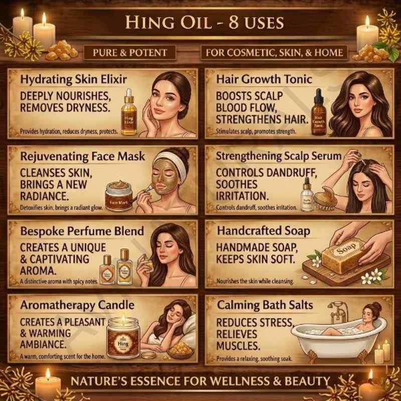 The rich, earthy aroma enriches tactile and aromatic experiences. Products infused with Hing Asafoetida Oil feel naturally aromatic, grounding, indulgent, and exotic, offering refined sensory appeal that enhances elegance, sophistication, and overall premium experience consistently.