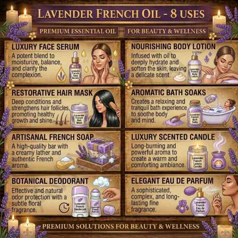 - Lavender Infused Bath Bombs: Make lavender-infused bath bombs by adding 10 drops of Lavender French Oil to your favorite bath bomb recipe. Enjoy a fragrant and soothing bath experience that relaxes both the body and mind.