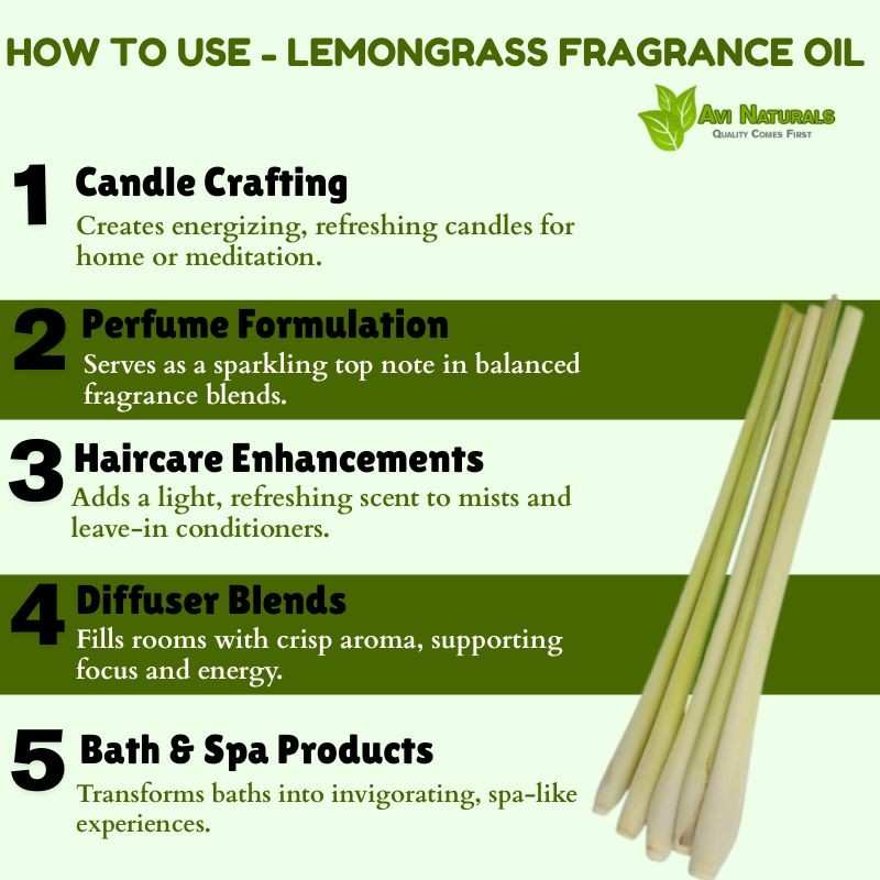In candle making, Lemongrass Fragrance Oil releases a refreshing aroma that transforms interiors into revitalizing spaces. The scent helps create an atmosphere filled with clarity and liveliness, making it perfect for energizing mornings or unwinding evenings.