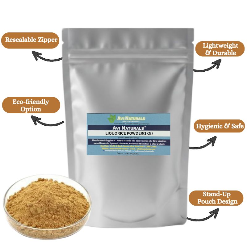 Liquorice Powder is valued for its clarifying effect on skin tone, helping to reduce the appearance of marks and blemishes over time. This makes it a staple in natural face packs designed to enhance clarity.