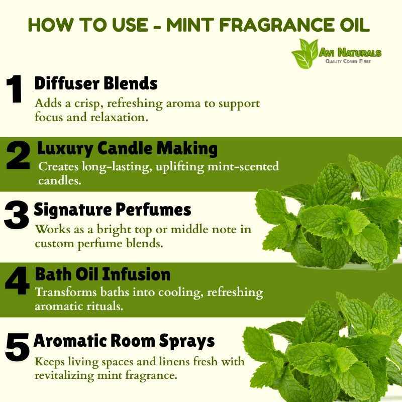 Buy Mint Fragrance Oil, 100% Pure at Wholesale Price, suitable for Room Fresheners, Home Care, Body Care, Hair Care, Skincare Products, Personal Perfumes, Lip Balms, Candles, Soaps, and more.