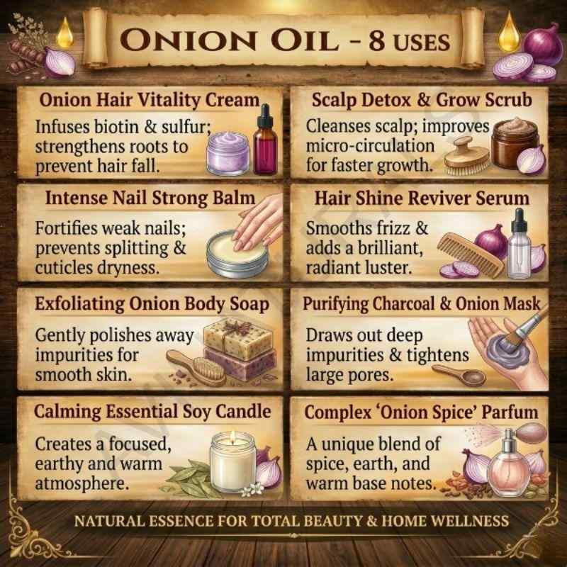 - Castor Oil Hair Growth Blend: Mix equal parts of Onion Essential Oil and castor oil to create a potent hair growth blend. Massage the blend into your scalp and leave it on for at least 2 hours before washing. The combination of these oils supports hair growth, strengthens roots, and improves hair thickness.