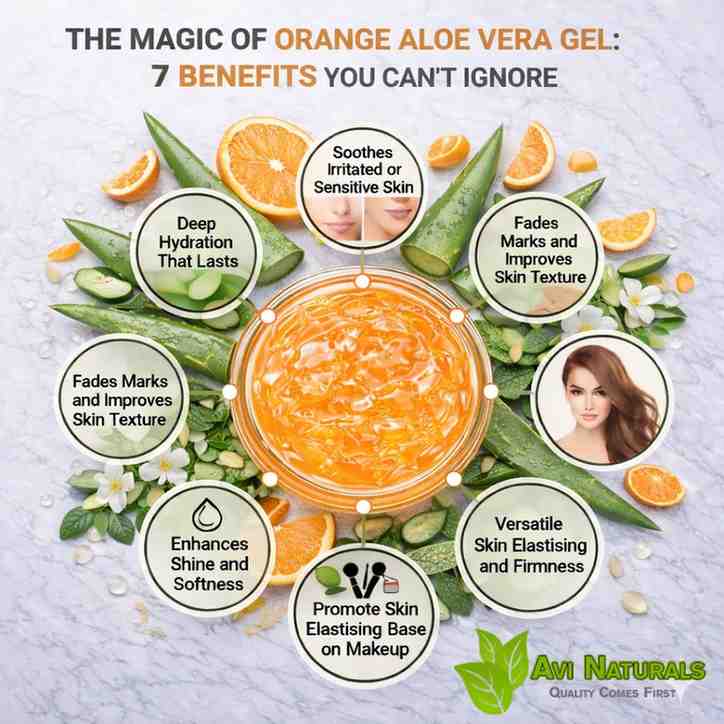 By blending hydration with light-reflecting freshness, Orange Aloe Vera Gel enhances the skin’s natural luminosity. It adds a subtle sheen that brightens the overall tone, giving a healthy, vibrant look.