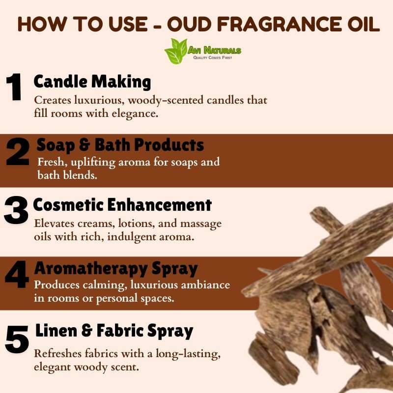 Blend with complementary fragrance oils in candles or creams. Oud Fragrance Oil harmonizes aromas, producing naturally aromatic, luxurious, deep, and signature artisan products that elevate both aesthetic and olfactory appeal consistently.
