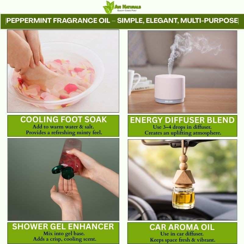Used in diffusers, sprays, or incense, peppermint oil imparts an uplifting aroma that makes spaces feel lively and refreshed, supporting an atmosphere of energy and movement.