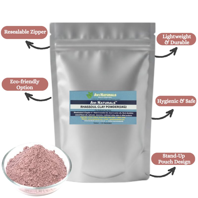 Rhassoul Clay Powder, also known as Moroccan Lava Clay, is a natural mineral-rich clay sourced from the Atlas Mountains. Renowned for its silky texture and rich mineral content, it has been a staple in luxurious spa treatments and premium beauty rituals for centuries. Its fine, absorbent particles make it an ideal ingredient for cosmetics, facial masks, hair treatments, and body care products, offering a unique blend of pampering and refinement. Rhassoul Clay Powder gently enhances skin and hair textures, leaving them soft, smooth, and revitalized without harsh abrasiveness. It also elevates spa and home care rituals, creating a sensory-rich experience that blends tradition with modern cosmetic sophistication. Compatible with a variety of natural ingredients, essential oils, and botanical extracts, this clay powder is versatile for crafting custom beauty treatments, from hydrating masks to nourishing hair blends. With Rhassoul Clay Powder, every self-care ritual becomes a luxurious and rejuvenating experience.