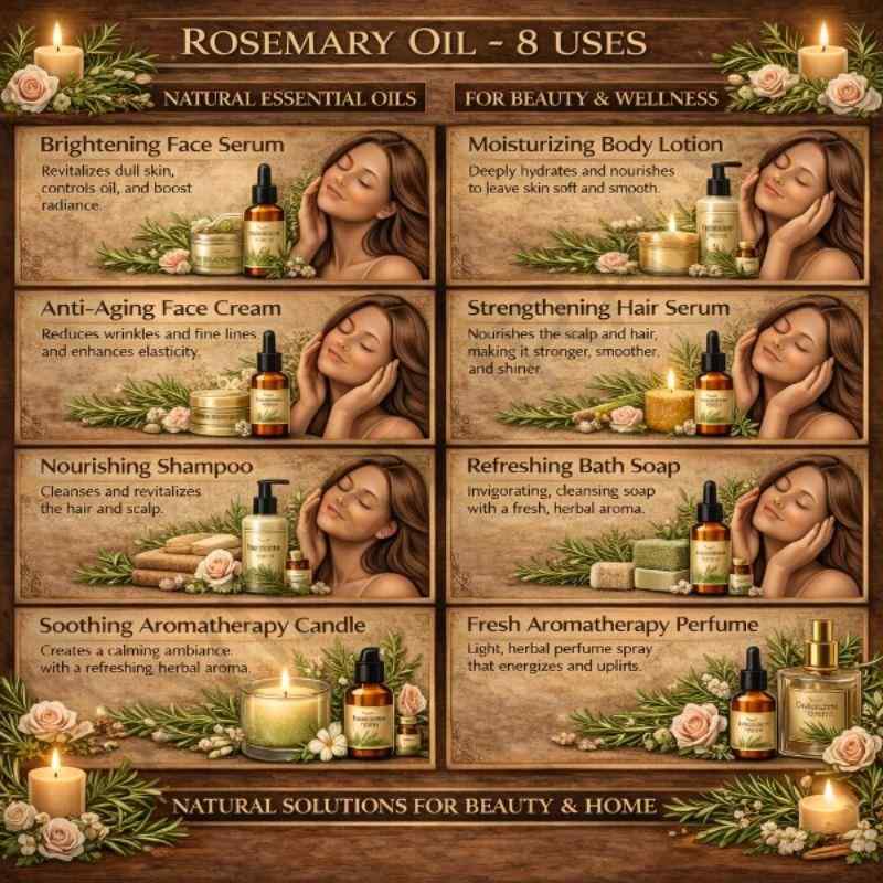 Harnessing the therapeutic properties of this oil involves exploring various applications that cater to physical, mental, and emotional well-being. Here are creative and practical recipes to help you make the most of Rosemary Oil: