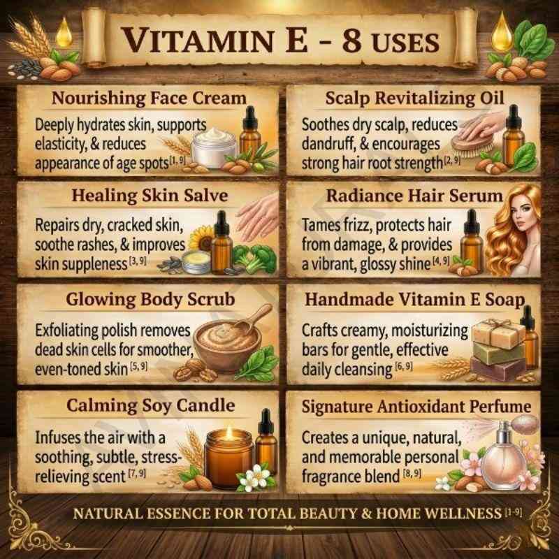 Use Vitamin E Oil to craft unique cosmetic creations. Its smooth texture and subtle aroma elevate creams, serums, and massage oils into naturally luxurious and aromatic products.